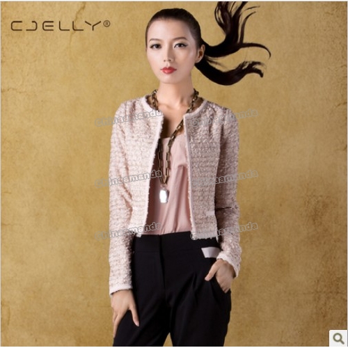 Cream-colored Lace O-neck Autumn Fashion Women's Jackets & Coats |