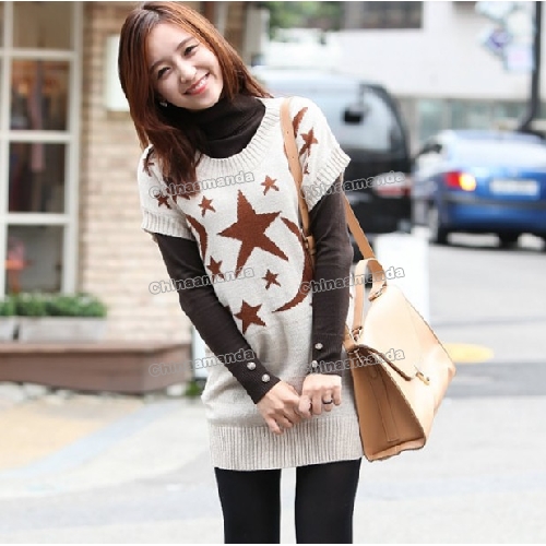 Cream-colored Short Sleeves Long Style Women's Tank Tops |