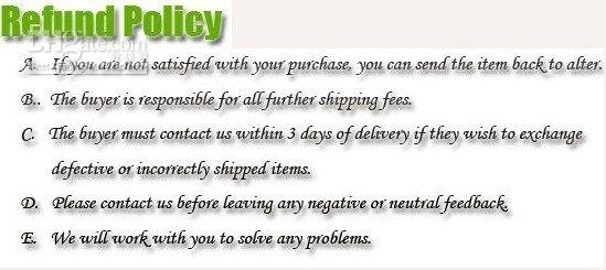 If you are not satisfied with your purchase, you can exchange the item. The buyer is responsible for all further shipping fees.