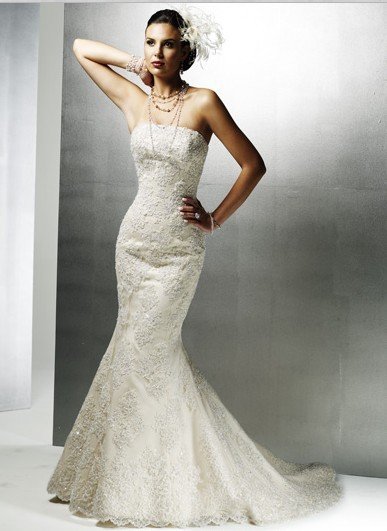 Custom Made Gorgeous Sexy Mermaid Lace Court Train Sleeveless Strapless Wedding Dresses For Bride |