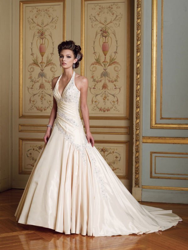 Custom Made Taffeta Halter Backless Sleeveless Side Draped Wedding Dresses |