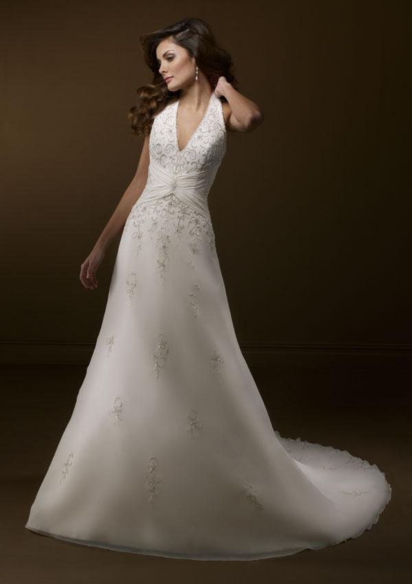 Use: Bride Place of Origin: Shanghai China (Mainland) Feature: Anti-Wrinkle,Breathable,Dr... Brand Name: OEM Hemline: Floor-Length Fabric Type: Chiffon Technics: Appliqued Design: Halter Silhouette: Sheath Style: Modern Material: 100% Silk Model Number: ALL Supply Type: OEM Service color: Optional