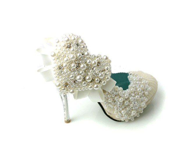 Custom Makes Heart Pearls Styles Bridal Wedding Evening Party Shoes |