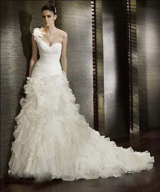 Custome Made Popular Mermaid Organza One-Shoulder Free Shiping Wedding Dress |