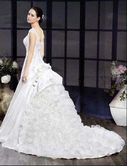 Customized Fast Delivery High Quality Floor Length with Big Train Classic Wedding Dress(HGK3648) |