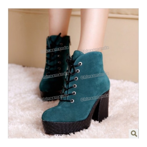 Dark Green Lace Up With Platform Real Leather Women's Boots |
