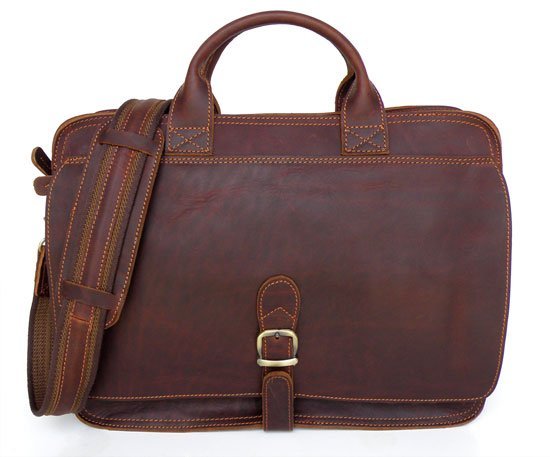 Dark Red With Buttons Rectangular Shape Leather Briefcases |