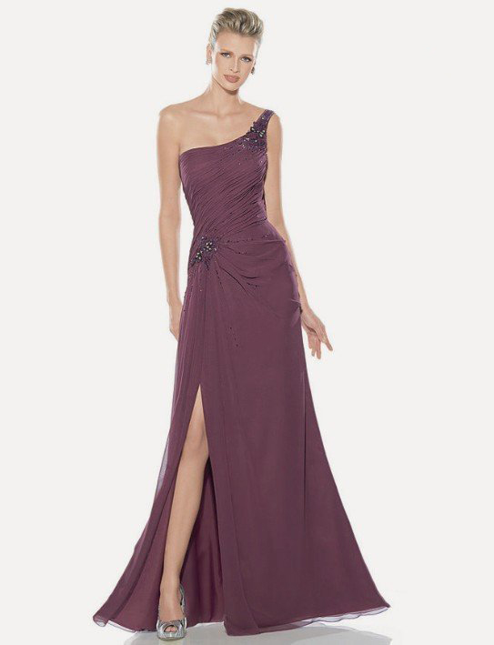 Elastic Woven Satin Chiffon Evening Gowns Dresses One Shoulder Floor Length Beaded |