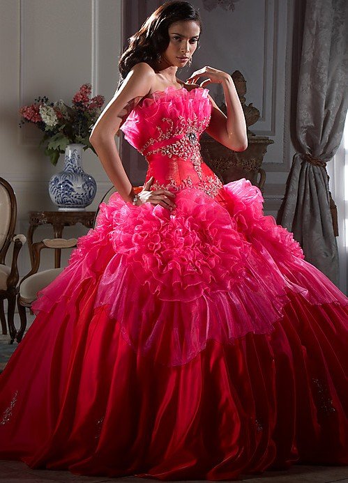 Elegant Ball Gown Strapless Organza Red Quinceanera Style Prom Dress |