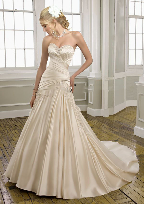 Elegant & Luxurious Beaded Embroidery Floor Length Wedding Dress |