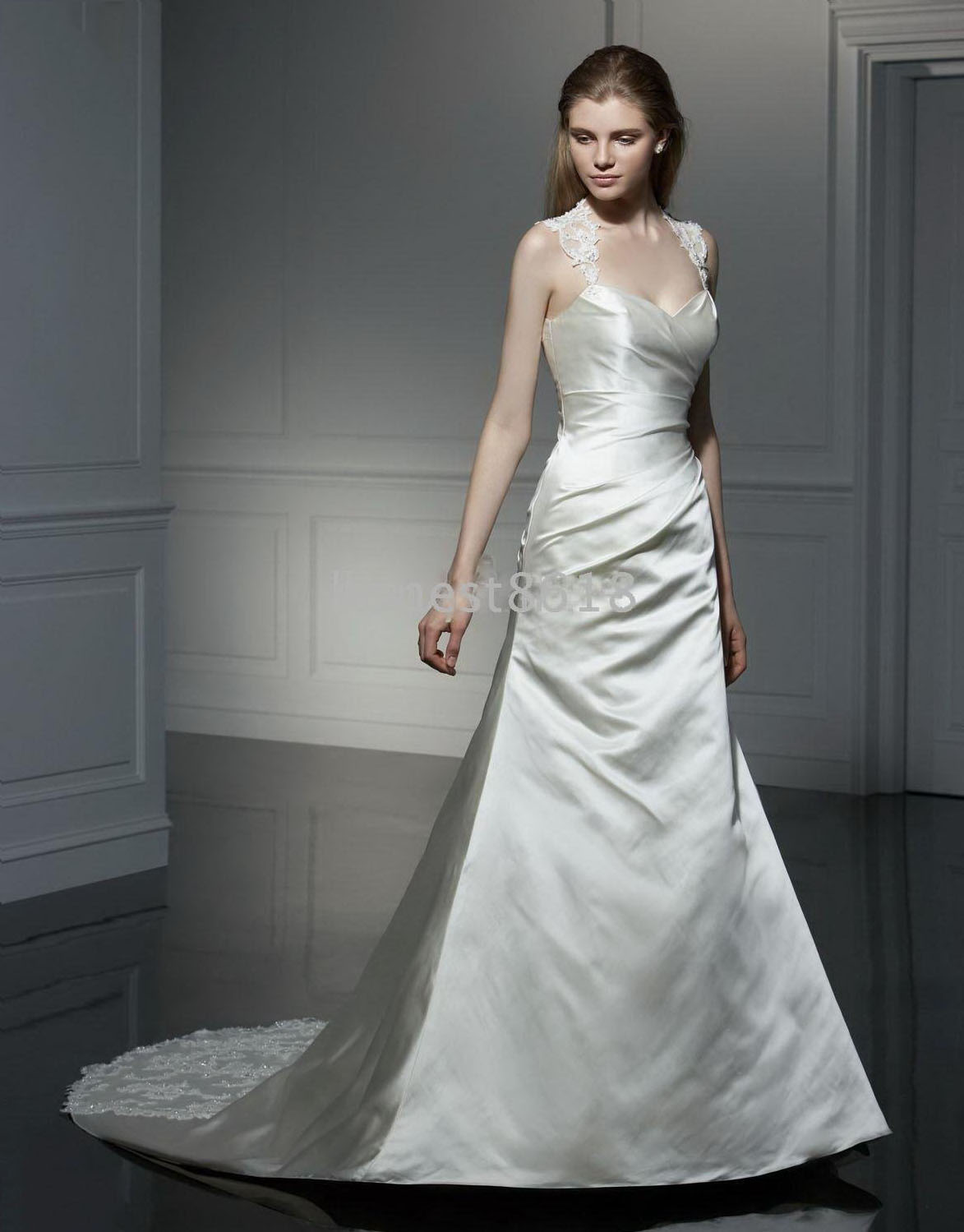 Embellished Bridal Gowns Sleeves A Line Wedding Dresses Buttons Back |