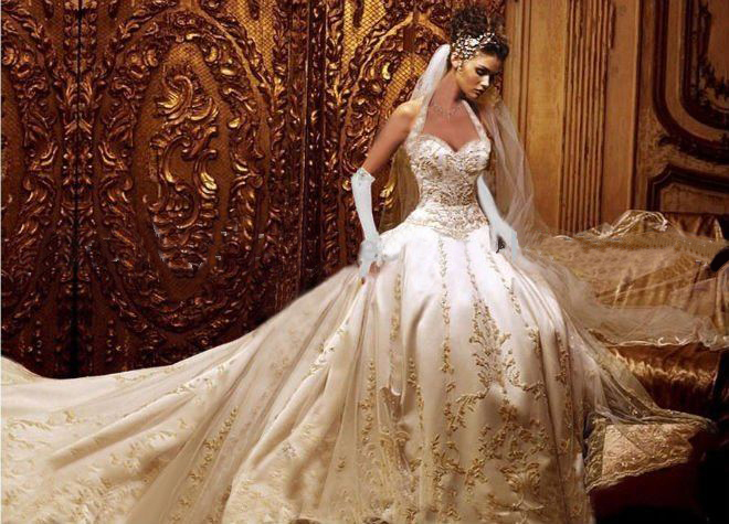 Embroidered & Satin Floor-length Halter & Tulle Luxury Wedding Dresses |