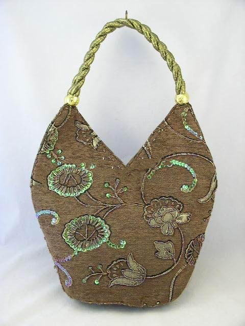 Fashion Brown Tapestry Beaded Florals Shoulder Bag Hobo |