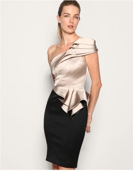 US$ 52.63 - US$ 73.68/pieceNew style designer one-shoulder silk satin ceremony prom dress Beige with black DK151