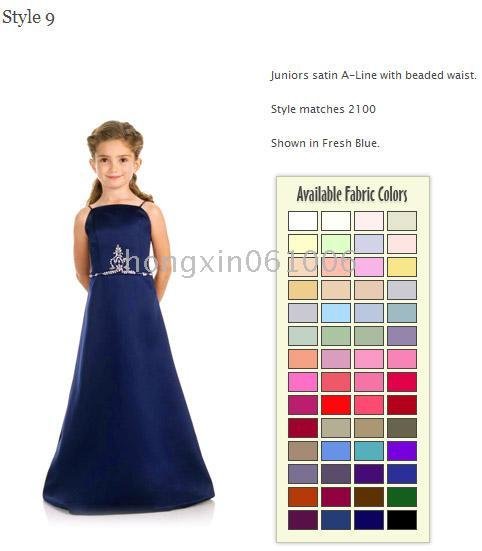 • Floor- Length Satin Flower Girls Dress Junior Bridesmaid Dress A-763 Girl Prom A-Line