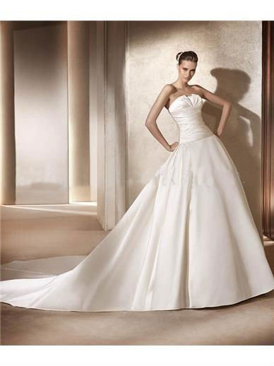 Floor-Length Sleeveless Strapless Off-the-shoulder Taffeta Cathedral Train Wedding Dress |