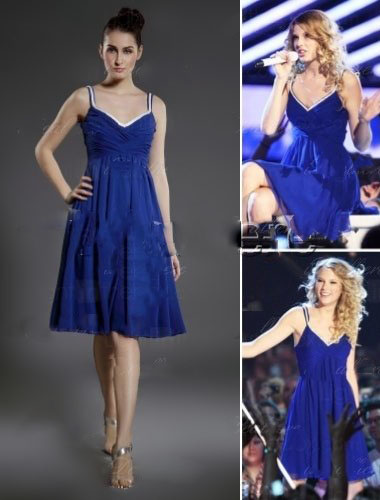 Free Shipping A-line Straps Knee-length Chiffon Elastic Woven Satin Taylor Swift/ Cocktail Dress |