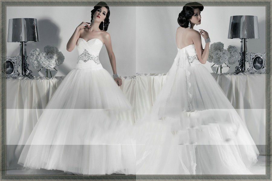 Free Shipping Custom Made Fashion Sweetheart Organza Beaded Wedding Dress! Ball Gown Watteau Train Bridal Gowns Prom Dress -SWW9 |