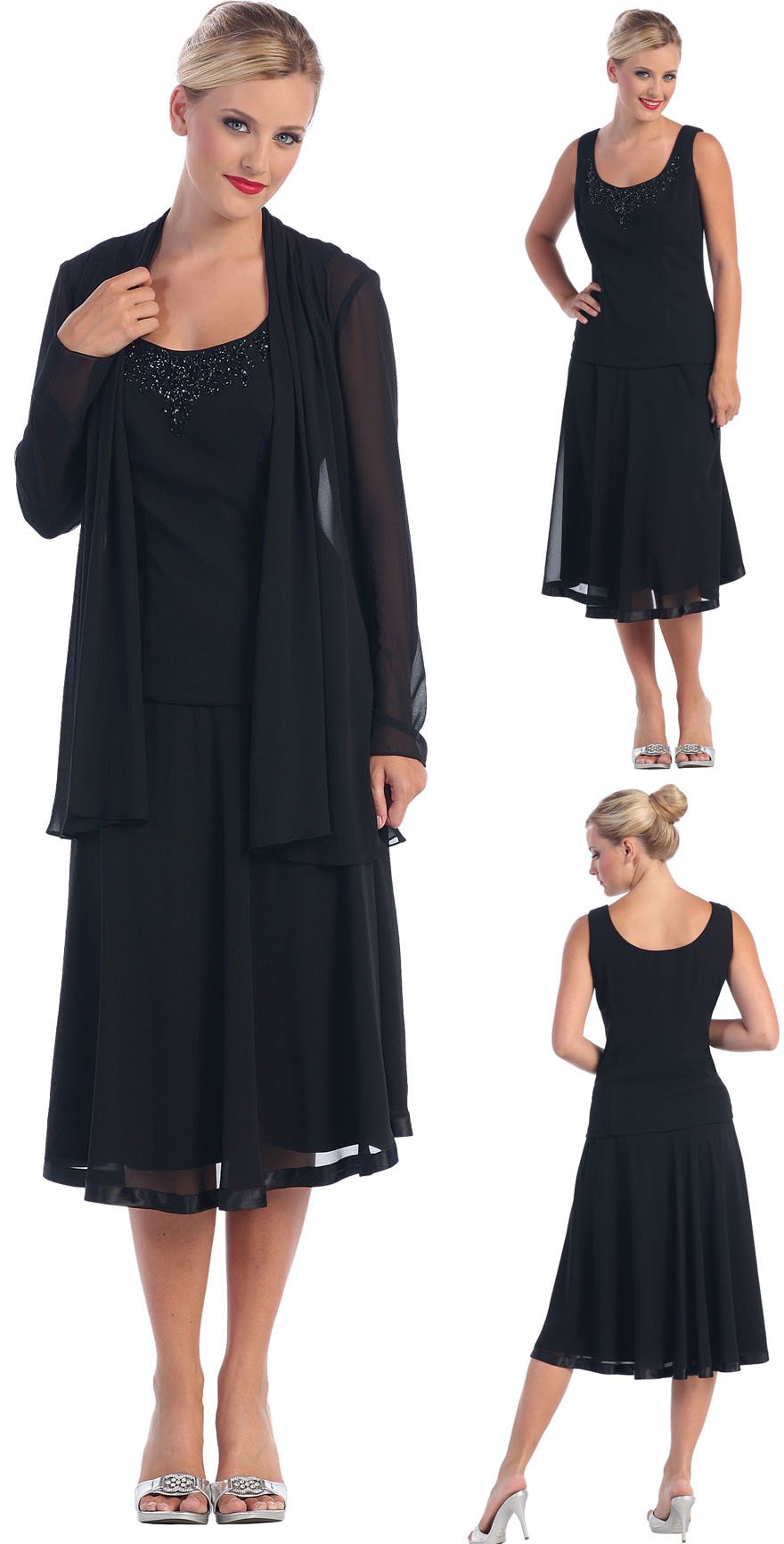 Free Shipping Elegant Scoop Neckline Chiffon Tea-length Mother of The Bride Dress,mother of The Bride Gown M007 |