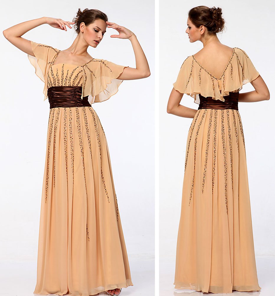 Free Shipping Empire Square Neckline Elegant Chiffon Beaded Mother of The Bride Dress,mother of The Bride Gown M001 |