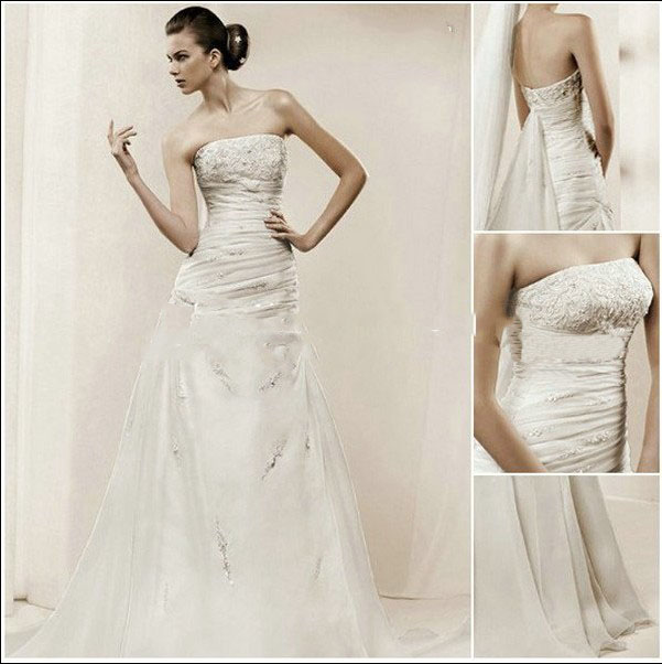 Free Shipping EU417 Fashion Strapless Beaded Watteau Train Wedding Dresses |