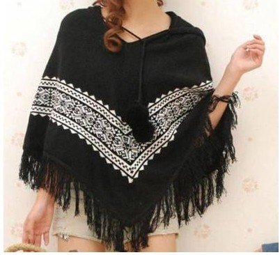 free shipping new style winter snow tassel even cap knitting sweater cloak shawls coat