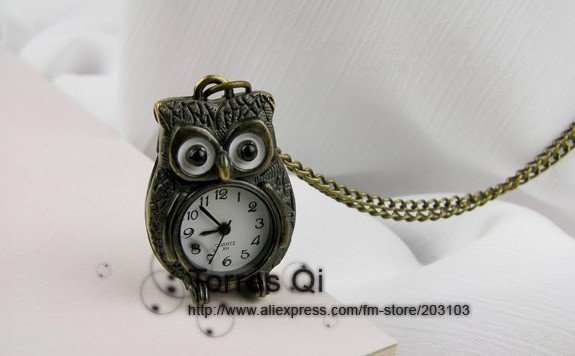 15 pieces / lotFree shipping 100pcs/lot New Lovely Owl Bird Pendant Bronze Watch Necklace pocket watch New