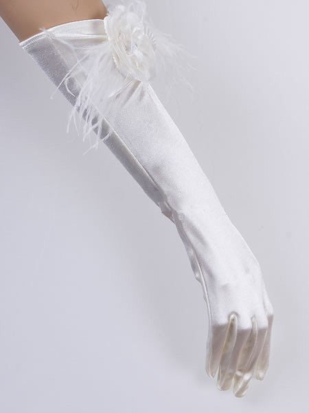 Product Type: Bridal Gloves Place of Origin: Jiangsu China (Mainland) Technics: Appliqued Bridal Gloves Style: Elbow Material: Satin Available Color: White, Ivory Glove Length: Elbow Size: One size fits most