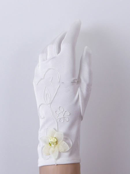 Product Type: Bridal Gloves Place of Origin: Jiangsu China (Mainland) Technics: Embroidered Bridal Gloves Style: Wrist Length Material: Satin Available Color: White, Ivory Glove Length: Wrist Size: One size fits most