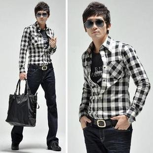 FREE SHIPPING Sexy Stylish Line Patched Casual Shirts Size: M L XL XXL 0770 |