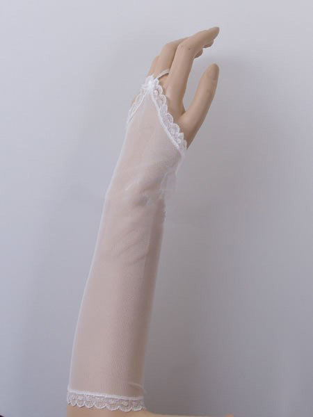 Product Type: Bridal Gloves Place of Origin: Jiangsu China (Mainland) Bridal Gloves Style: Elbow Technics: Embroidery With Beadings Material: Voile Available Color: White, Ivory Glove Length: Elbow Size: One size fits most