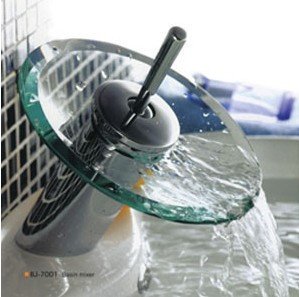 Free Shipping! Waterfall Faucet, Hot and Cold Water, Copper Basin Glass Waterfall Faucet, Big Mouth Leader(brass) |