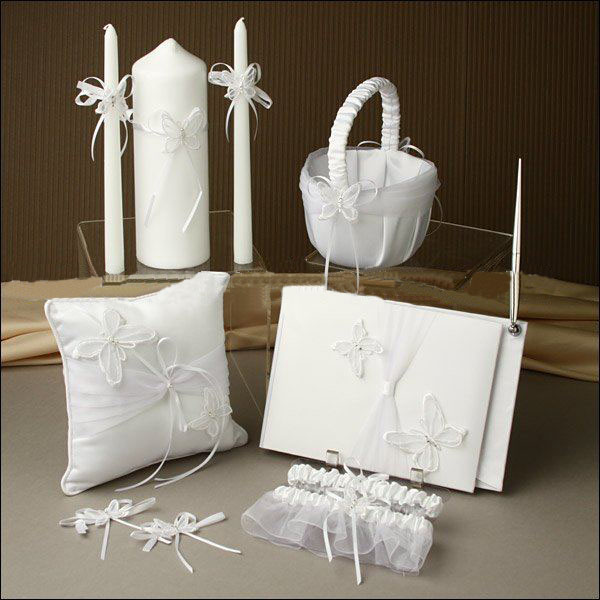 white is the color that represents the most pure level of love and is a popular color for weddings throughout the year as well as for those special wedding dates during the holiday season or near Valentine's Day. Make your wedding accessories "pop" by using our wedding gifts.The golden butterfly make the whole wedding set vivid.