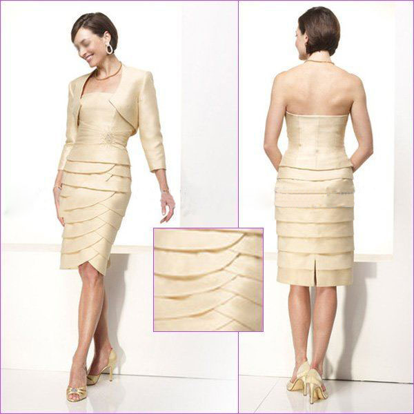 Free Shipping!Elegant Strapless Satin Knee Length Mother of The Bride Dress FR002 |