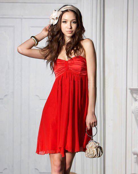 FY6277 New Elegant Strapless Chiffon Red Cocktail Dress |