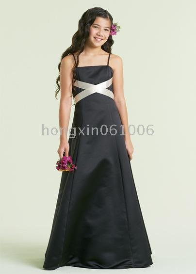 Girl Prom A-Line Floor- Length Satin Flower Girls Dress Junior Bridesmaid Dress A-758 |