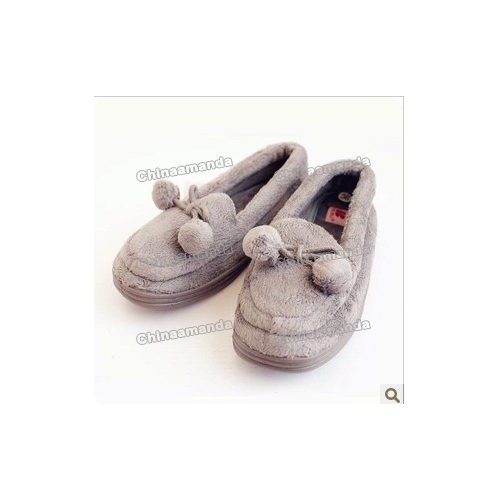 Gray Korean Style Small Balls On Wool Winter's Slippers |