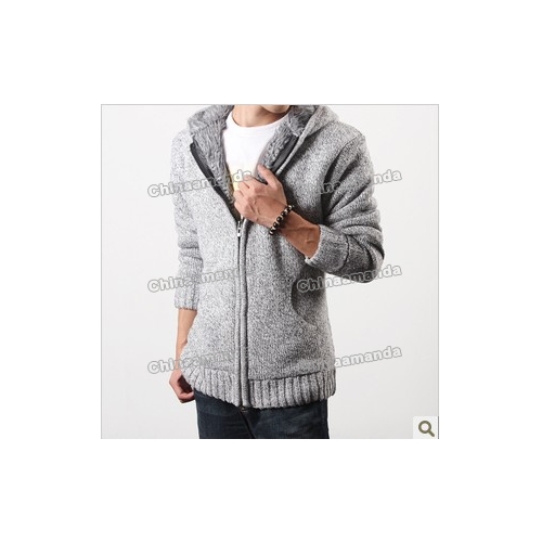Gray Wool Woven With Zipper Windproof Men's Jackets & Coats |