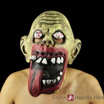 Green With Big Mouth & Long Tongue Baldish Halloween Masks |