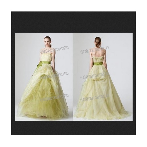 Green With Ribbons Backless Tulle Princess Wedding Dresses |