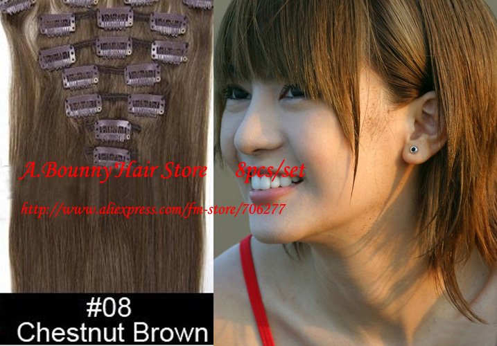 US$ 47.89 - US$ 51.05/pieceHair extensions 8pcs 20" #8 Chestnut brown,100g full around head human hair clip in on extensions