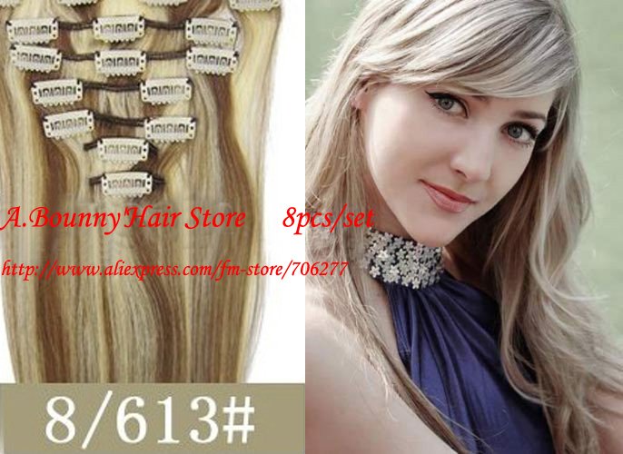 US$ 77.89 - US$ 81.58/pieceHair extensions 8pcs 24" #8 Chestnut brown,120g full around head human hair clip in on extensions
