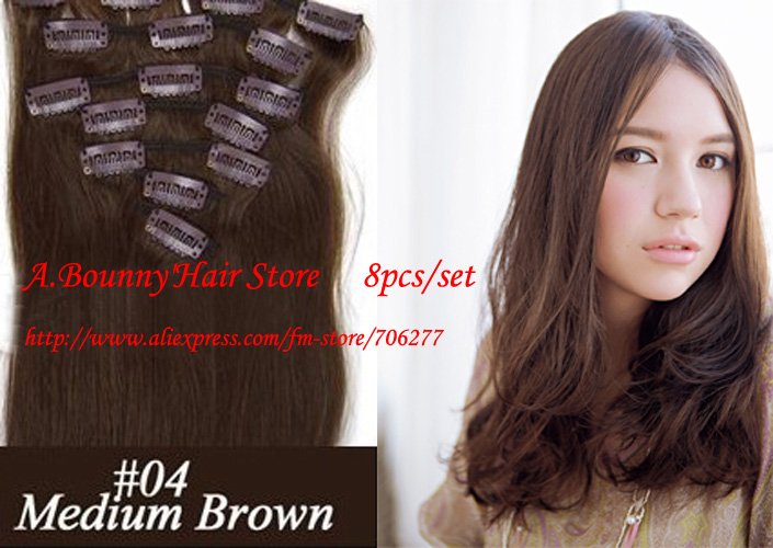 US$ 78.42 - US$ 82.11/pieceHair extensions 8pcs 20" #04 Medium brown,140g full around head human hair clip in on extensions