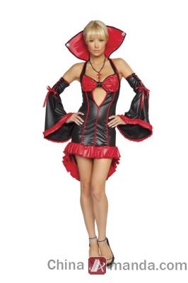 Halter With Sleeves Stand Collar Black Mini Halloween Costumes |