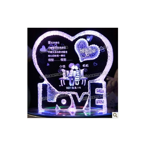 Heart Shape With Purple Light Glass Wedding Gifts |