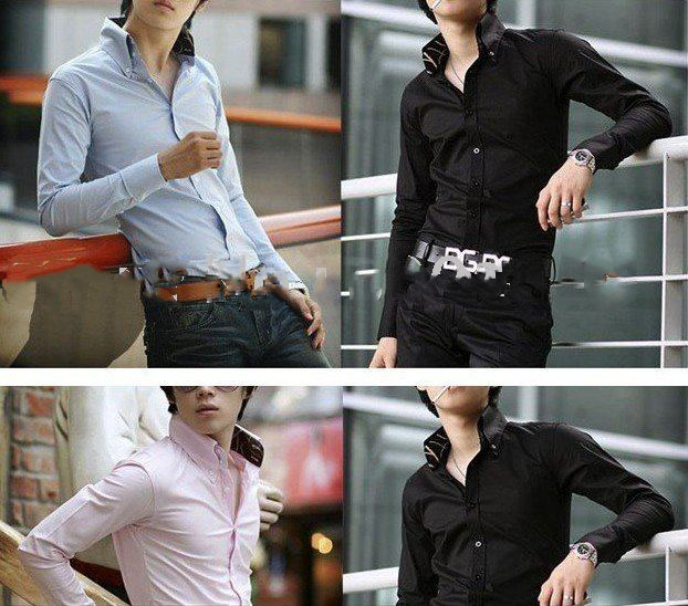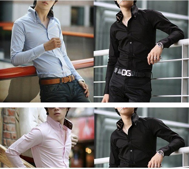 Hot Sale Fashion Men Shirts,Casual Slim Fit Stylish Dress Shirts,men Clothes,Colour:blue/black/white/pink |