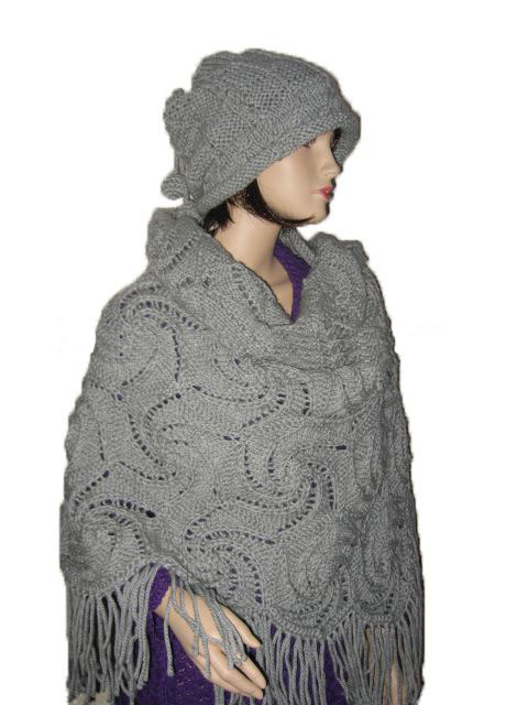 Hotselling Ladies' Winter Sweater Crochet Hand Knitted Wool Shawl Hats Set |