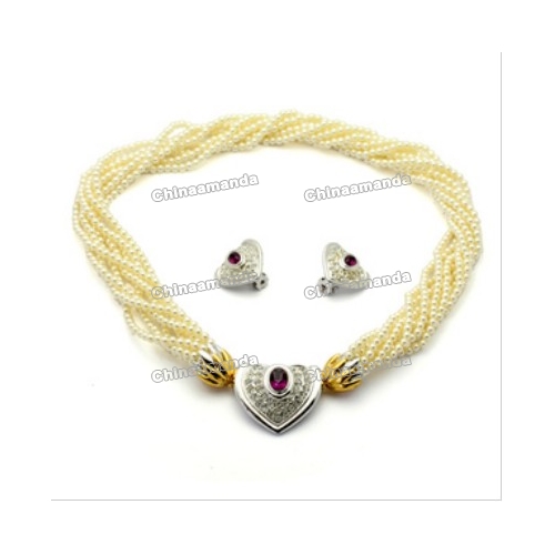 Ivory Pearls Necklace & Earrings Women's Bridal Jewelry Sets |
