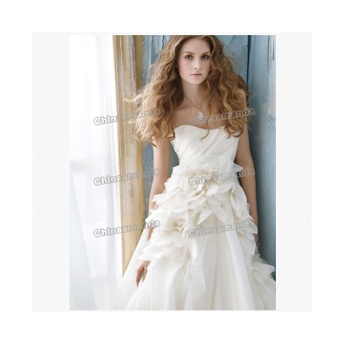 Ivory Satin Organza Backless Ruffles Ball Gown Wedding Dresses |