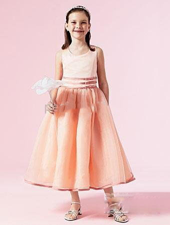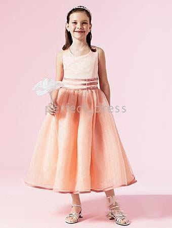 Junior Bridesmaid Dresses Style A-line Scoop Tea -Length Flower Girl Dresses |